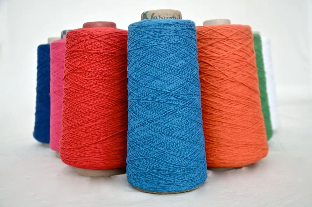 All of our yarn is recycled cotton yarn. Since it is recycled, there is no need to dye the yarn again, which is more beneficial for the environment. We do not dye the yarn because synthetic dye is known to be toxic and harmful. Our company manages each product that is produced and we guarantee at least 95 percent of its original color. The yarn we produce is typically 30 percent polyester and 70 percent cotton. However, we can accommodate any special requests you may have. Thank you!